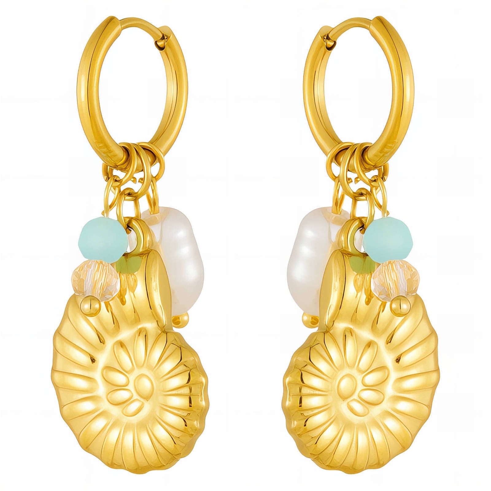 Material: Stainless steel, Pearl imitation, Gold plating.